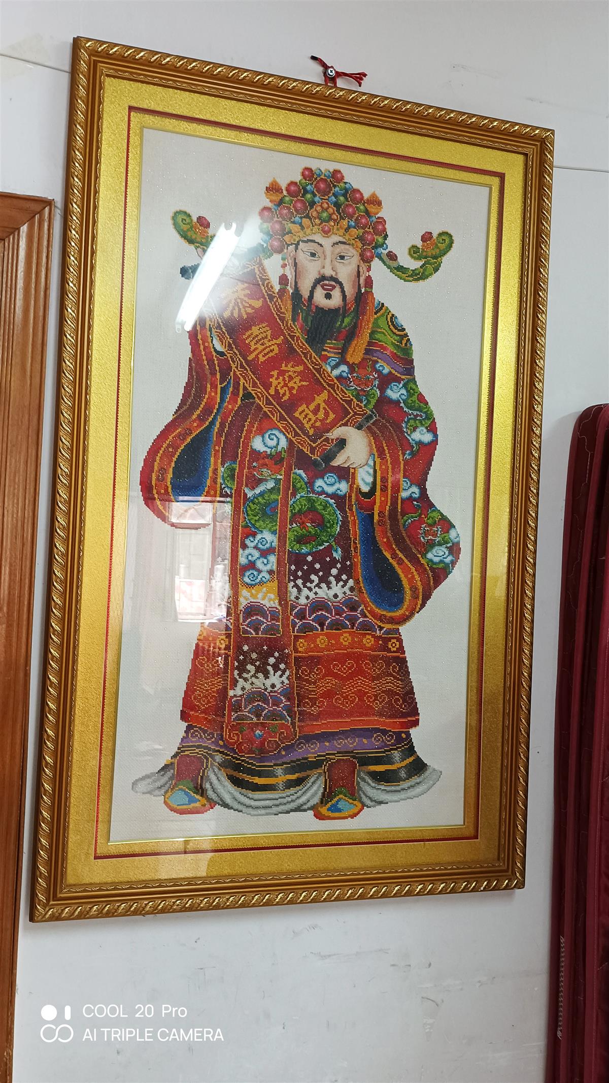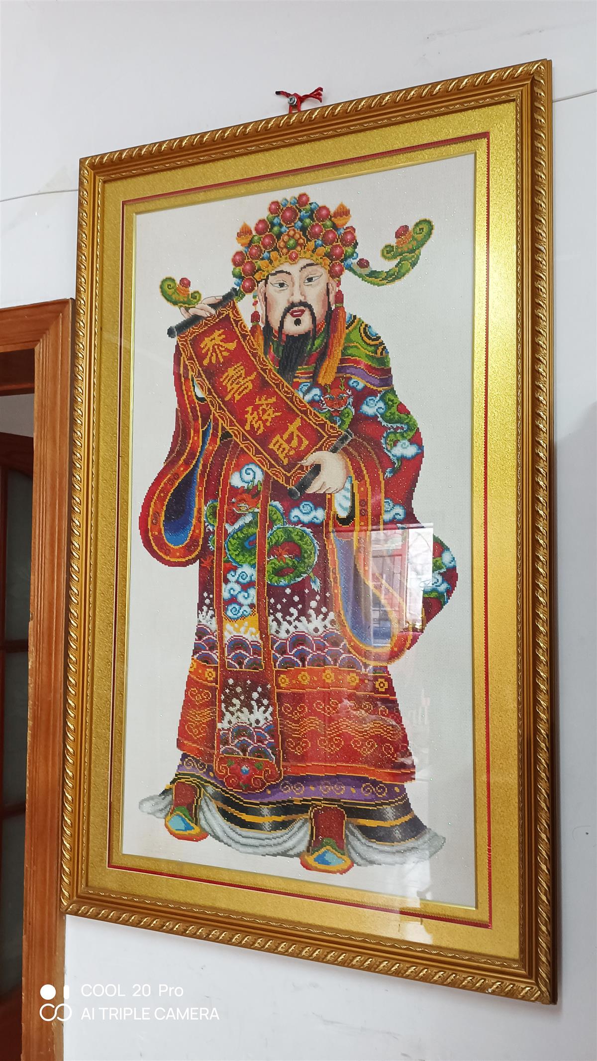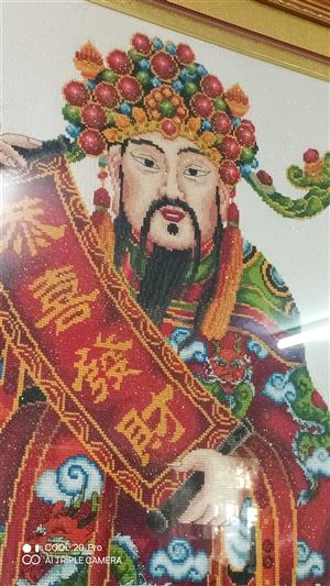 十字繡大財(cái)神相框,寬0.74米,高1.2米。200元